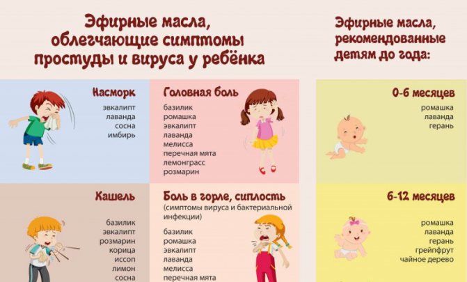 Эфирные масла используют при ингаляциях над чайником или ставят в помещении с больным ребенком