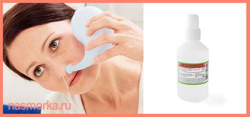 - средством прополаскивают горло и промывают нос (каждую пазуху отдельно).