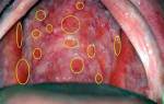 - О. ринофарингит. Симптомы острой формы характеризуются выраженными признаками воспаления. У пациента болит горло, появляется насморк, поднимается температура. Может наблюдаться увеличение близлежащих лимфоузлов (подбородочные, подъязычные и др.).