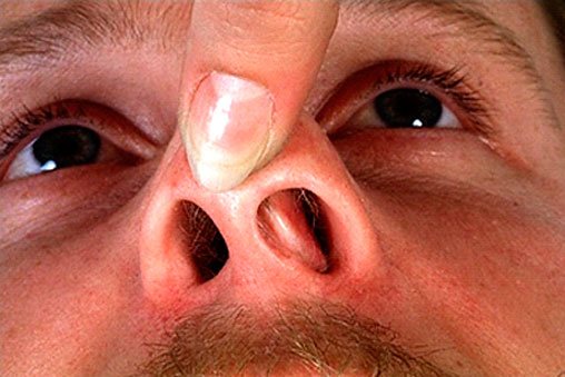 Для выяснения особенностей конфигурации боковых стенок, по результатам которых принимают решение о необходимости проведения операции носа при искривленной носовой перегородке, применяют смазывание раковины и перегородки 5 % раствором кокаина и адреналином.