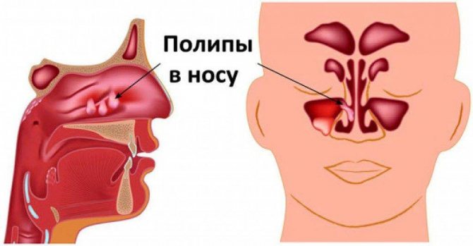 Полипы – новообразования, появляющиеся вследствие осложнения хронического насморка или аллергических заболеваний. Традиционная медицина для борьбы с ними использует оперативное вмешательство, народная медицина успешно проводит лечение носа травами (промывание), такими как, ромашка аптечная, кора дуба, шалфей, особый эффект дает применение чистотела.